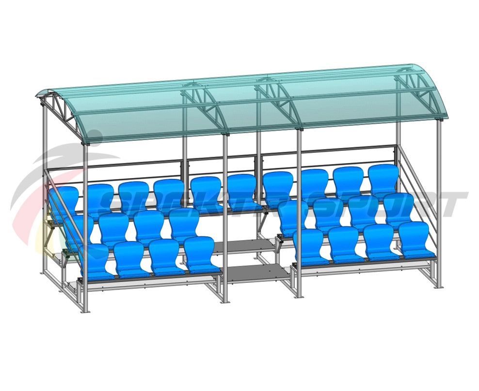 Трибуна для зрителей 3 ряда на 26 мест с навесом и перилами
